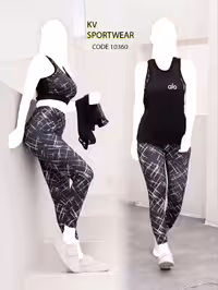 ست نیم تنه لگ و کاور سایز بزرگ ورزشی زنانه alo کد 007
