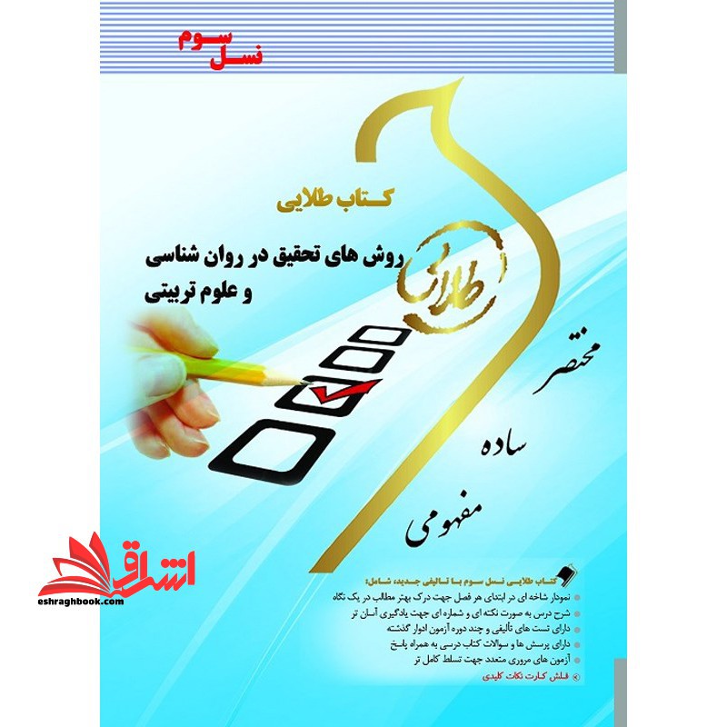 کتاب طلایی روش های تحقیق در روان شناسی و علوم تربیتی (نسل سوم) : ویژه دانشجویان دانشگاه های سراسر کشور - فروشگاه کتاب اشراق