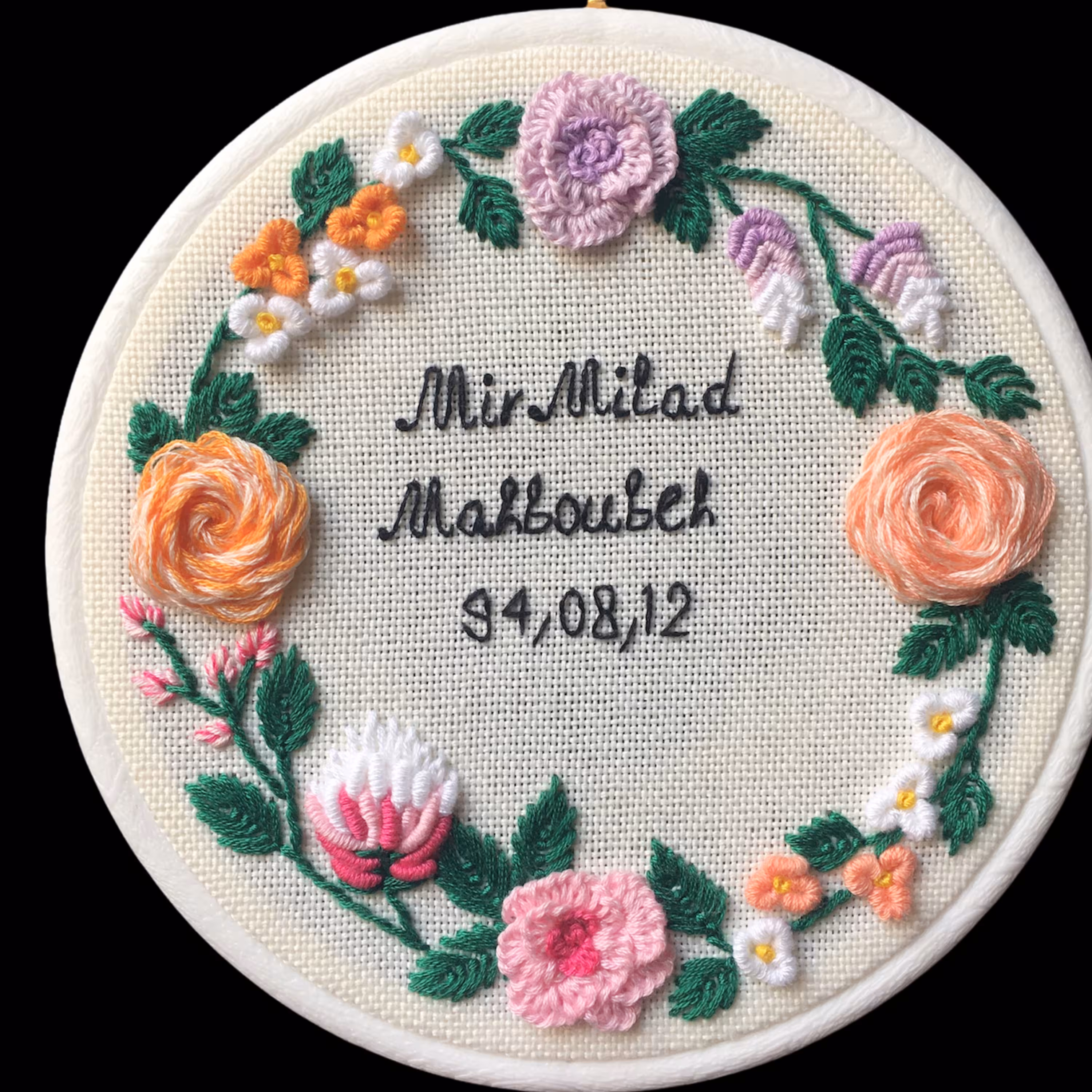 تابلوگلدوزی با دست (دیوارکوب گلدوزی) اسم با تاریخ ازدواج