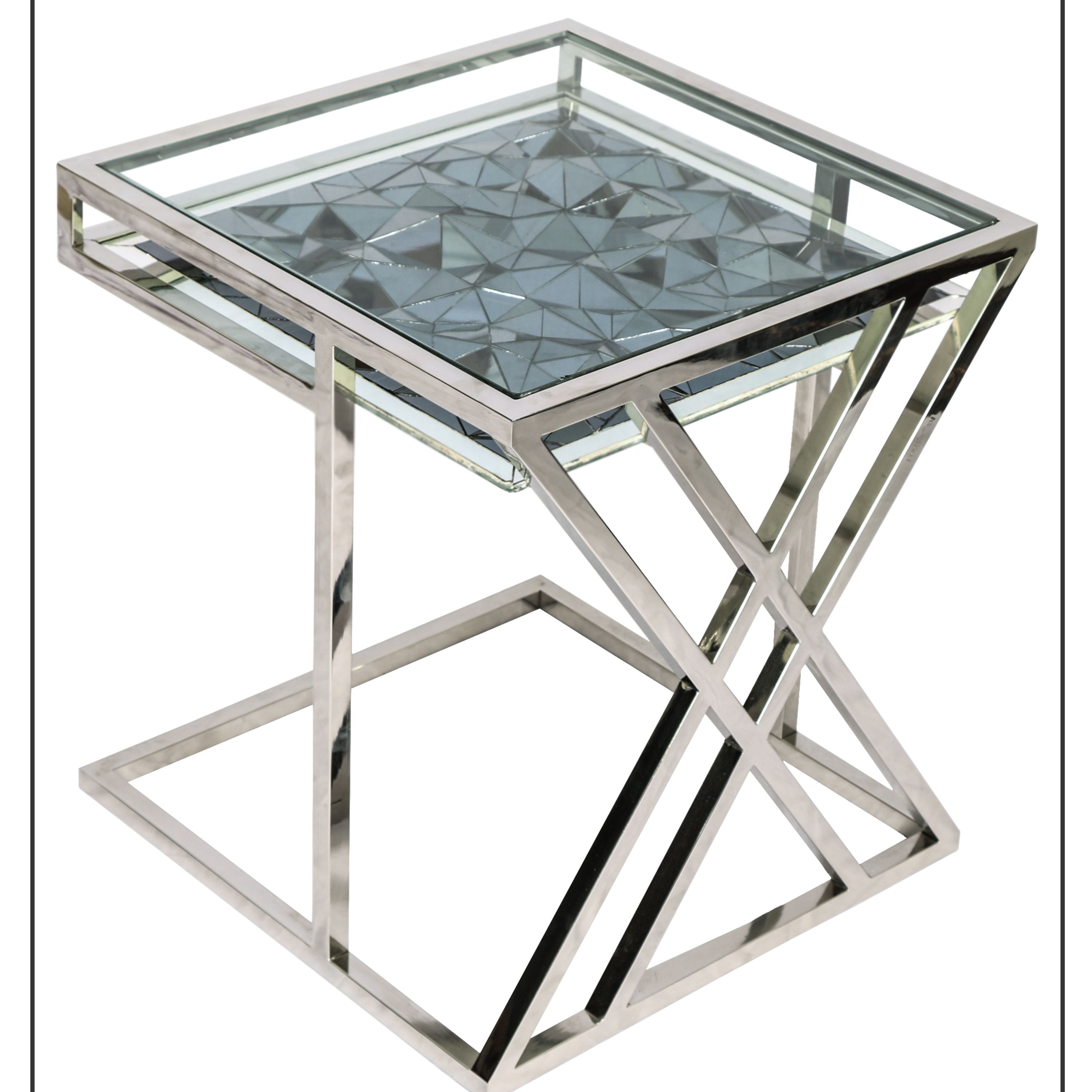 میز عسلی استیل نقره ای توکار شیشه ای 5050 وارتفاع 50