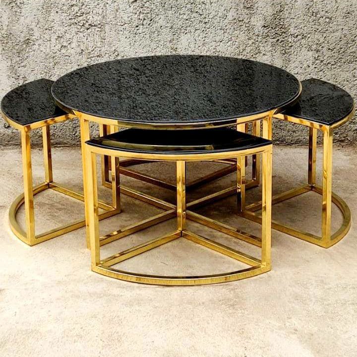 میز جلو مبلی و چهار عدد عسلی طرح پیتزایی رنگ ثابت آبکاری فورتیک