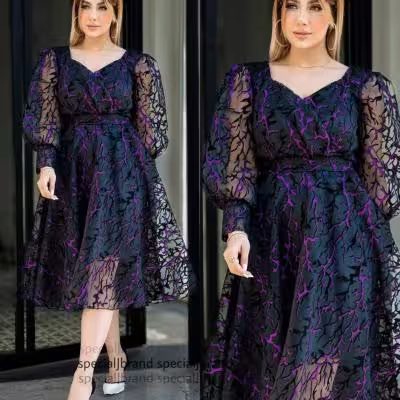 پیراهن بلند مجلسی ملیله دوزی دامن غواصی گرم بالا سایزبندی از 40 تا 52