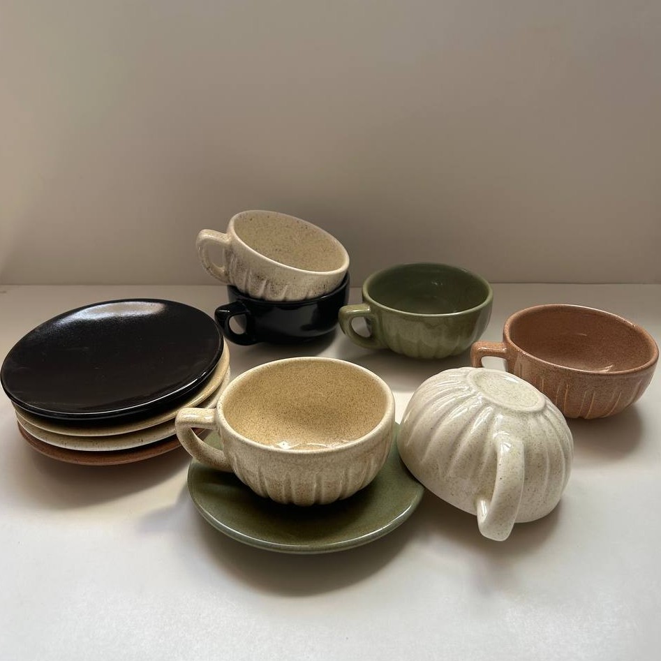 لیوان و زیر لیوانی سفالی با لعاب رنگ زرد قابل شستشو