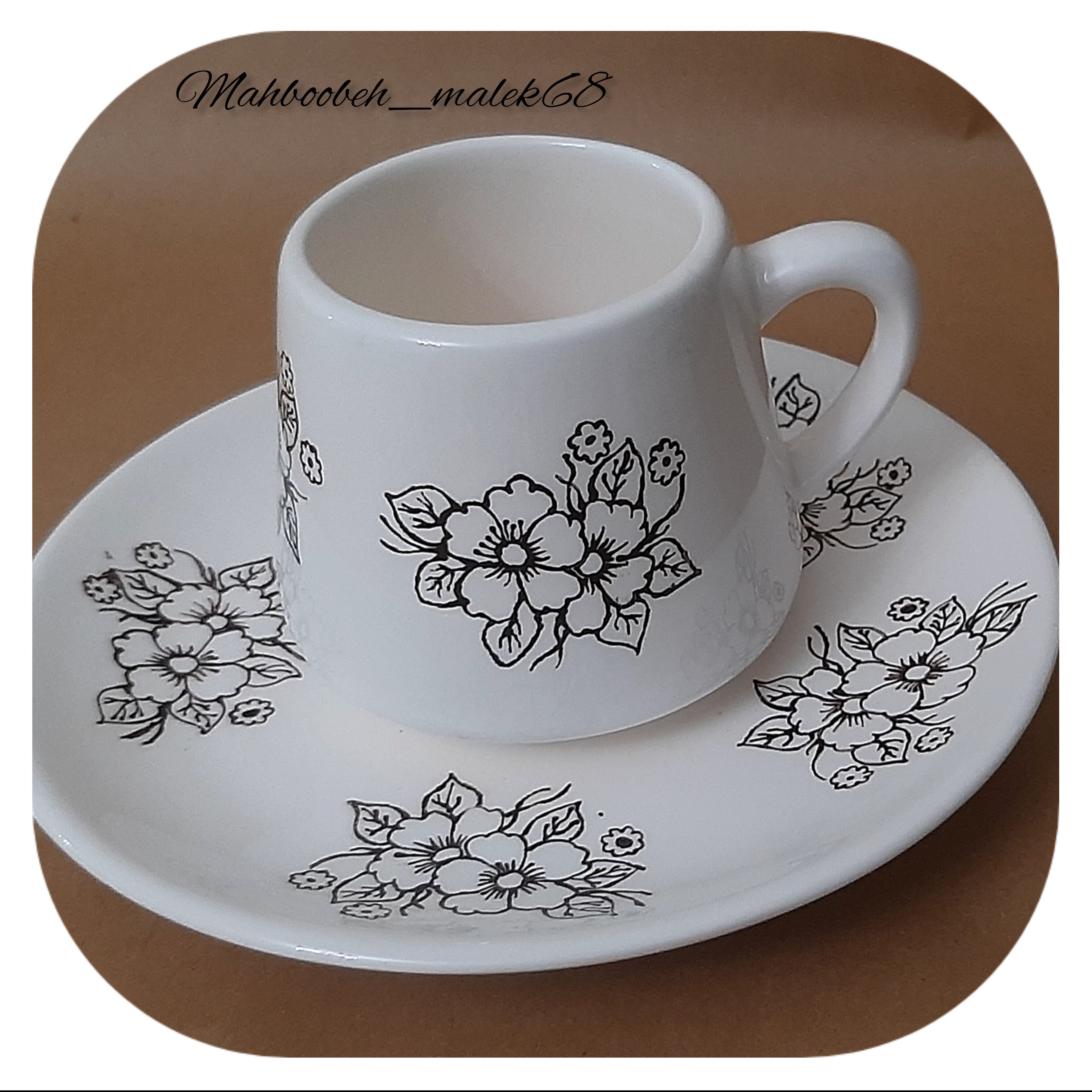 لیوان و زیرلیوانی شیک بارنگ سفید مشکی مناسب خاص پسندان