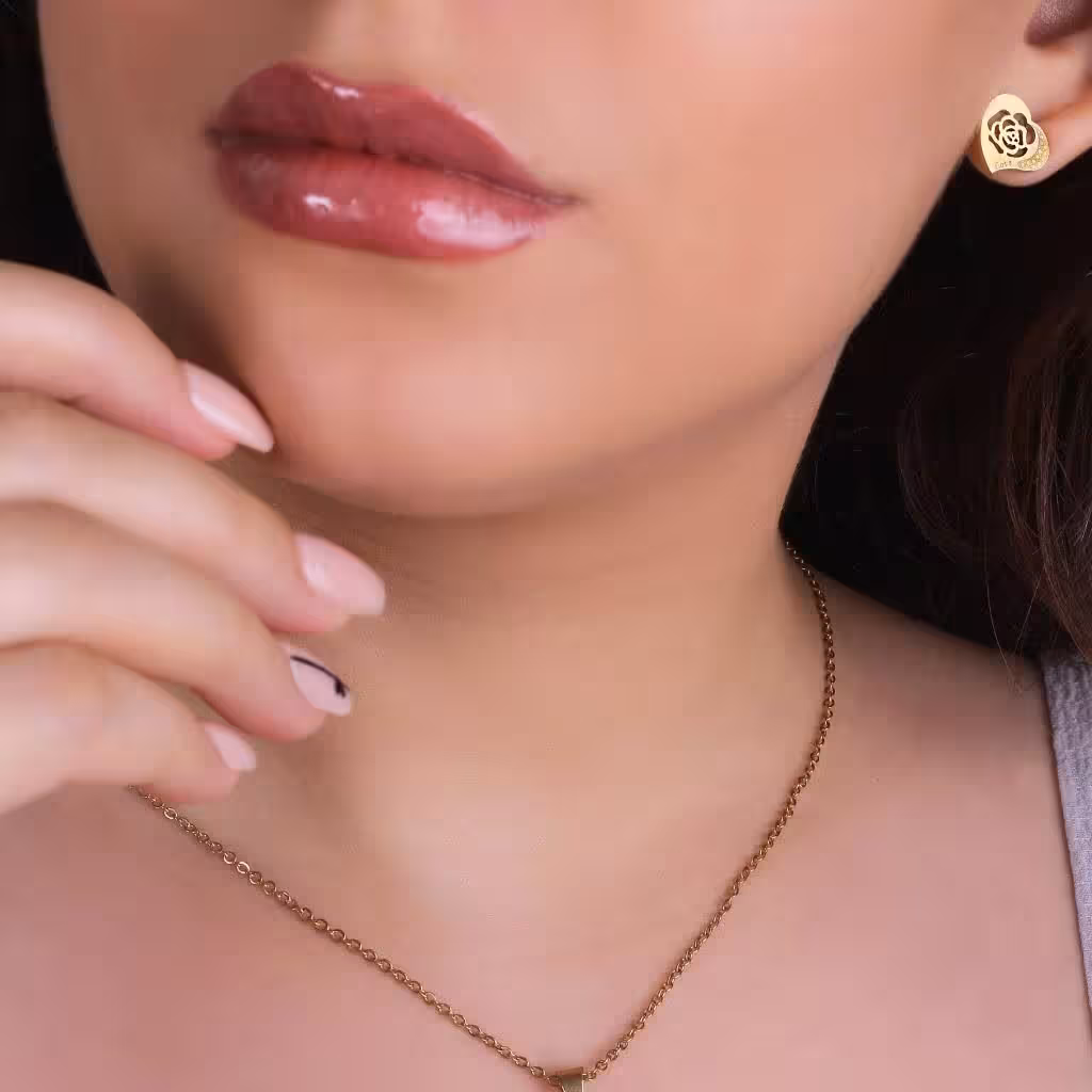 نیم ست گوشواره و گردنبند استیل رنگ ثابت با کیفیت درجه یک طلایی رنگ