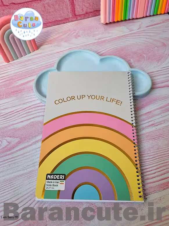 دفتر 60 برگ سیمی جلد گلاسه طرح رنگین کمان مینیمال طلاکوب 2