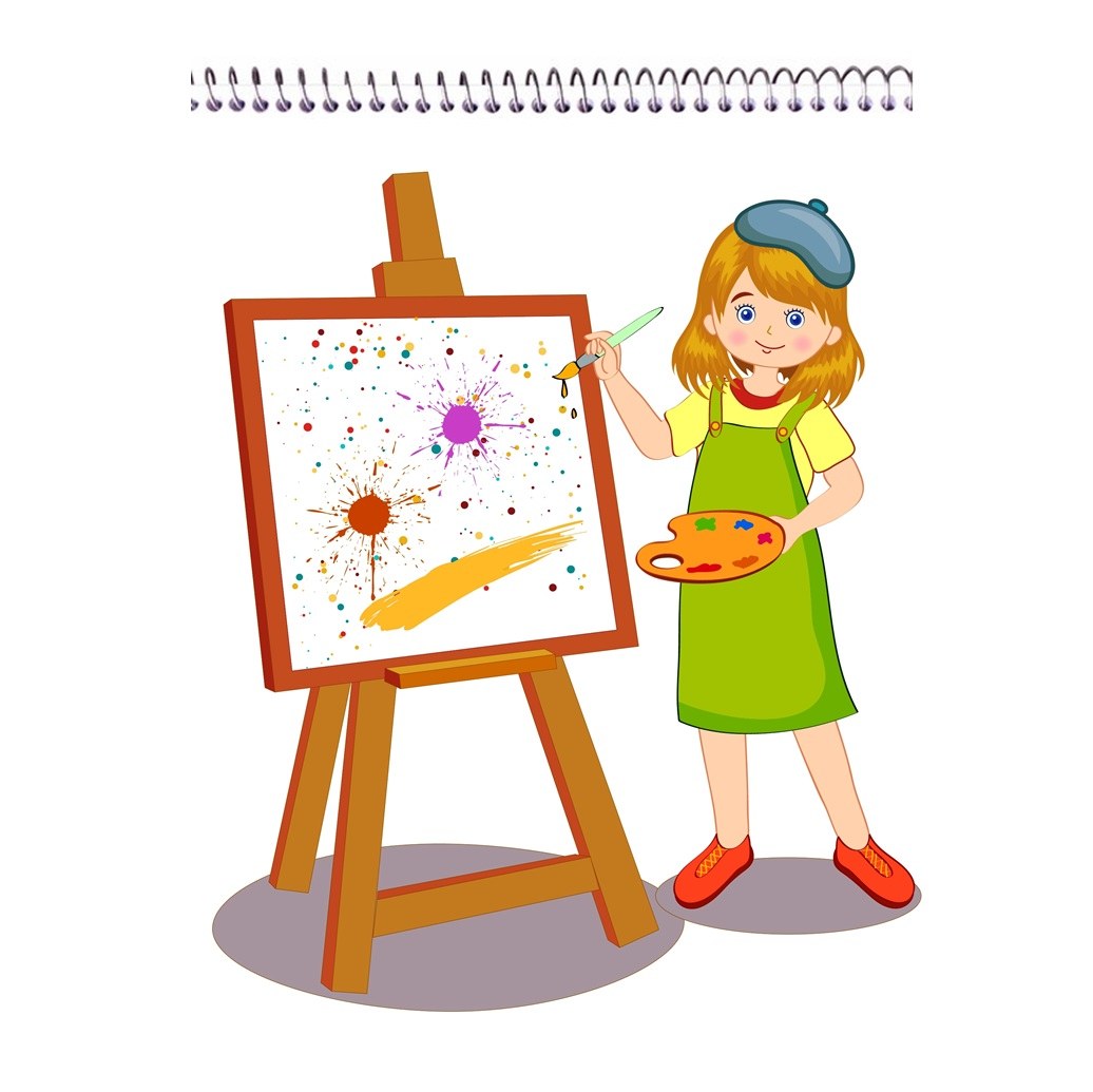 دفتر نقاشی فانتزی دخترانه طرح بوم نقاشی کد 09 ، فنری از بالا، 40 برگ سایز A5