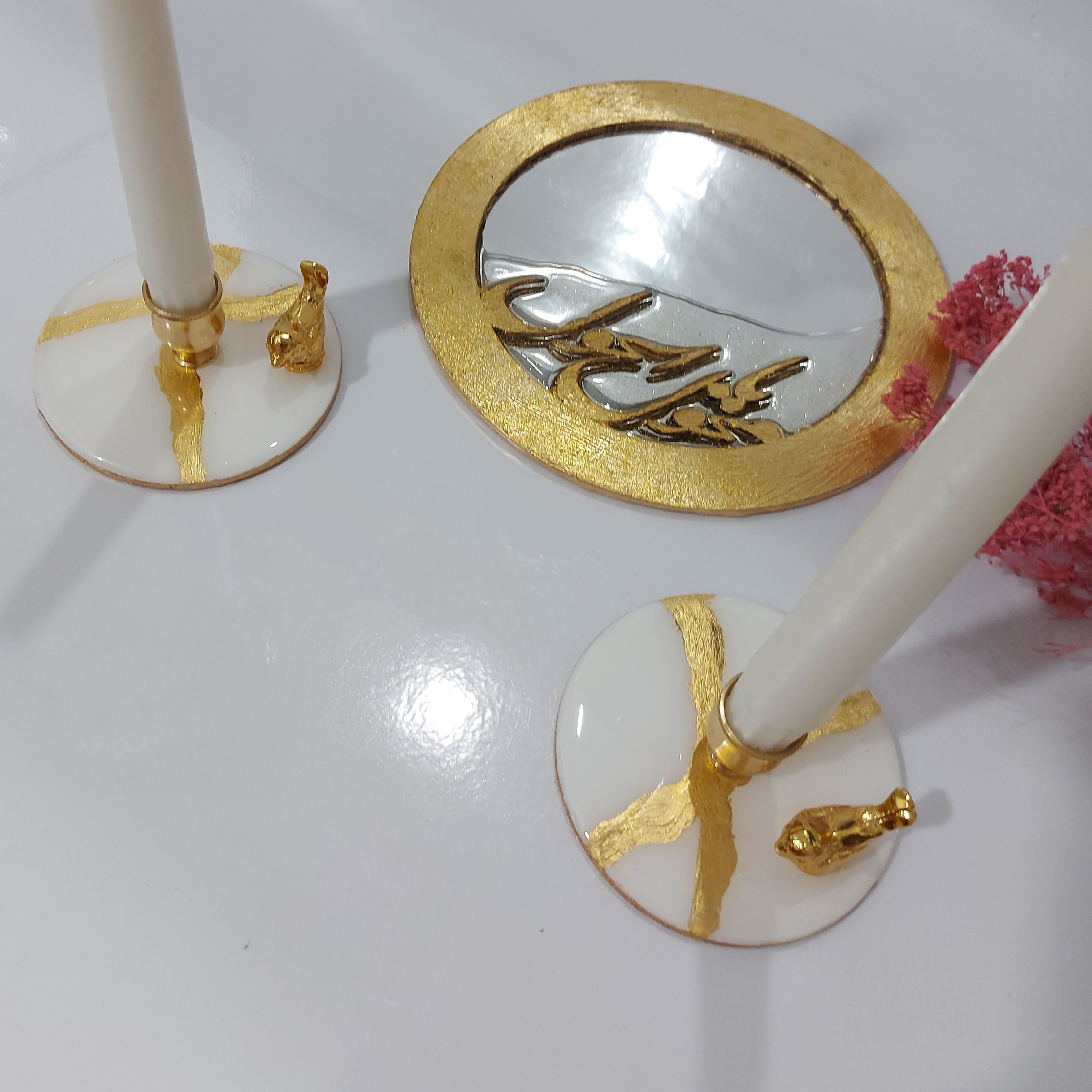 آینه و شمعدان سفید،مخصوص غنچه عروس،سفید،زیبا،قیمت مناسب