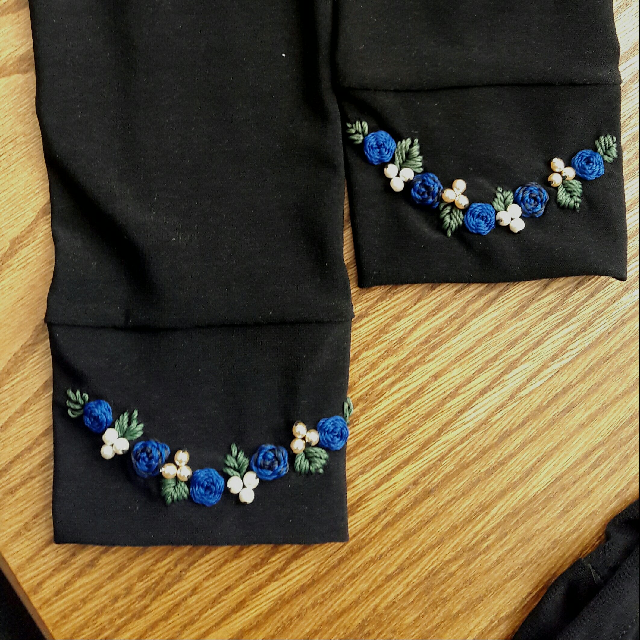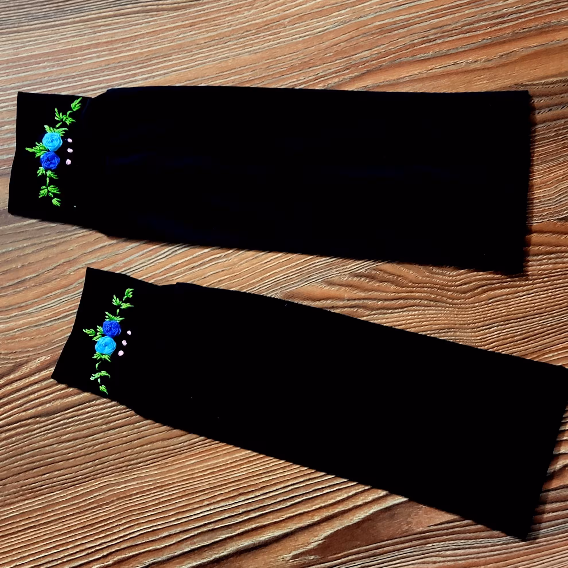 ساق دست سفید گلدوزی شده طرح دوگل آبی کاربنی