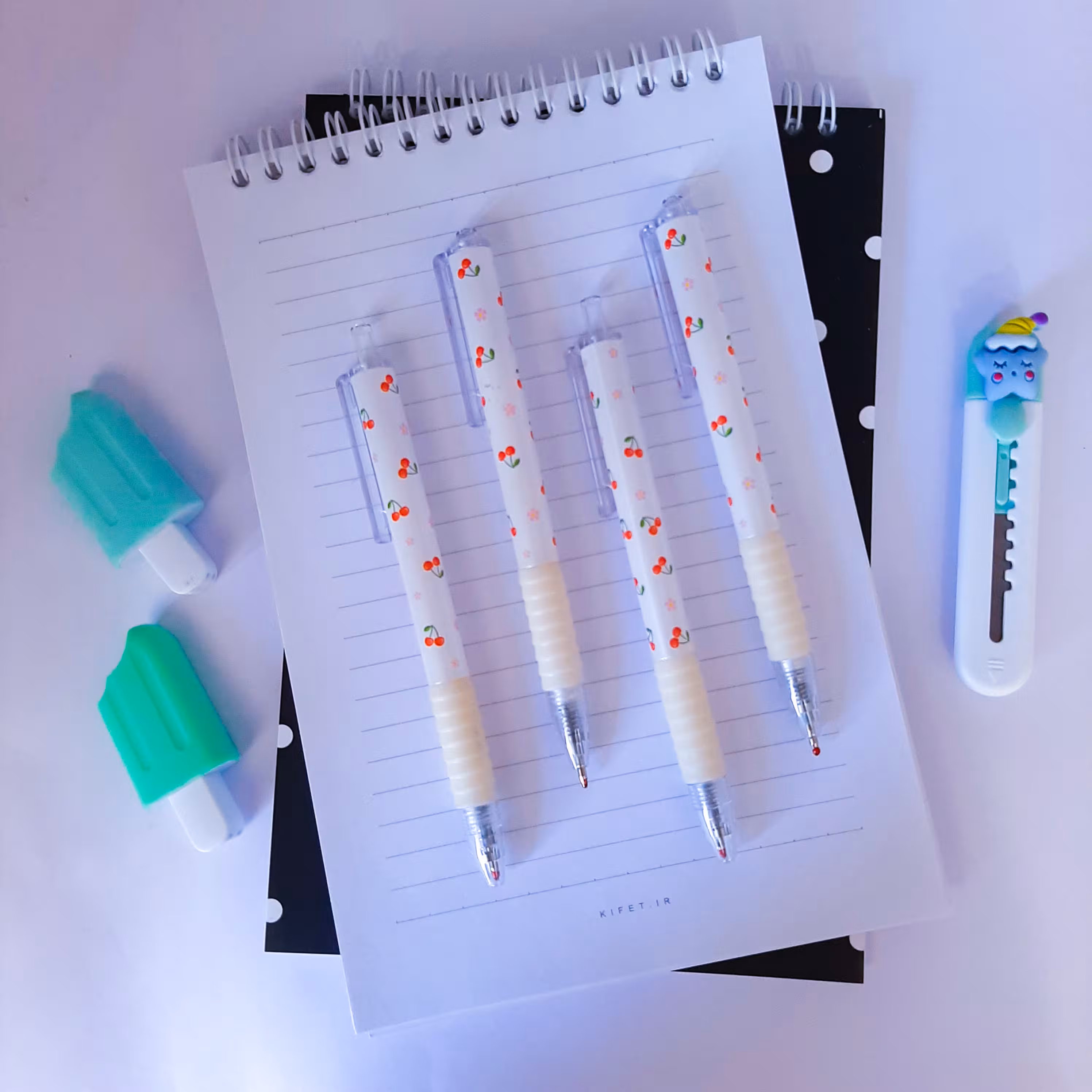 لوازم تحریر لوازم تحریر فانتزی نوشت افزار خودکار کلیکی طرح گیلاس رنگ جوهر مشکی