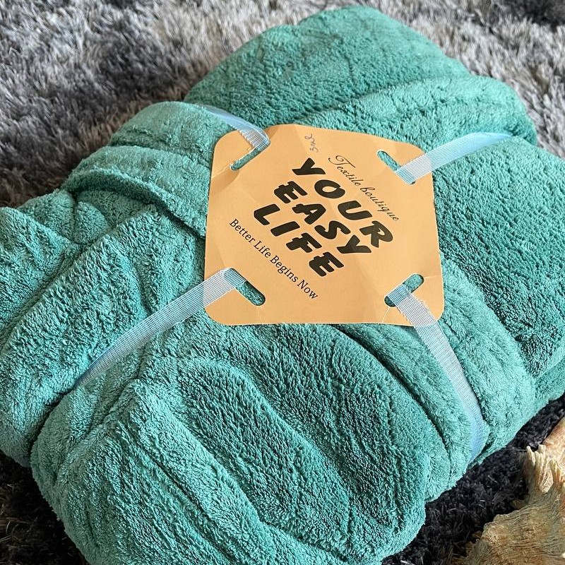 حوله پالتویی نانو وارداتی رنگ سبز آبی بسیار لطیف ،آبگیری عالی