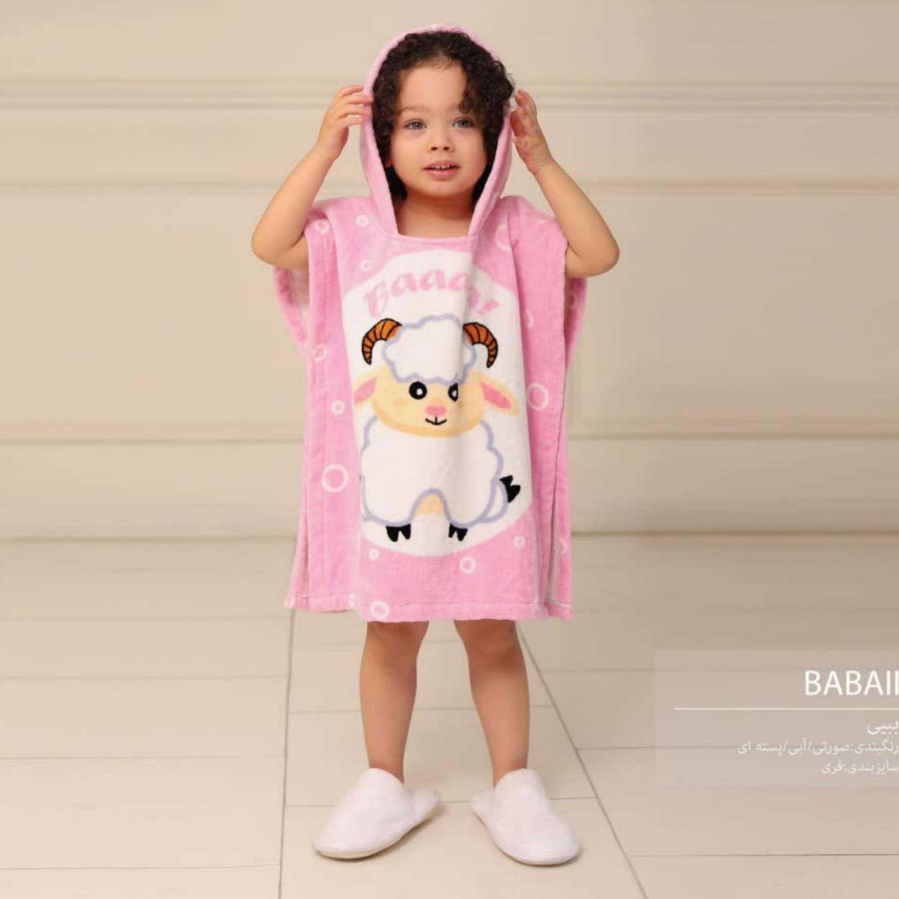 حوله پانچو پودایران طرح ببعی صورتی سایز 50 آزاد (100درصد پنبه) ضد حساسیت